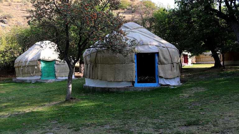 Das Sayyod Yurt Camp in Sayyod bietet eine einzigartige Erfahrung inmitten der Natur mit einem atemberaubenden Bergblick. Hier können Sie in traditionellen Jurten übernachten und die Ruhe und Gelassenheit der Umgebung genießen. Das Camp verfügt über ein Restaurant, eine Gemeinschaftsküche, eine Bar und einen saisonalen Außenpool. WLAN und Parkplätze stehen kostenfrei zur Verfügung. Erleben Sie einen unvergesslichen Aufenthalt in dieser besonderen Unterkunft.
