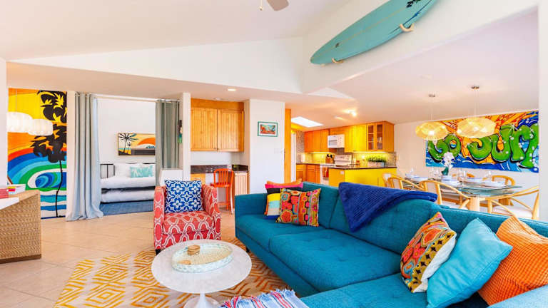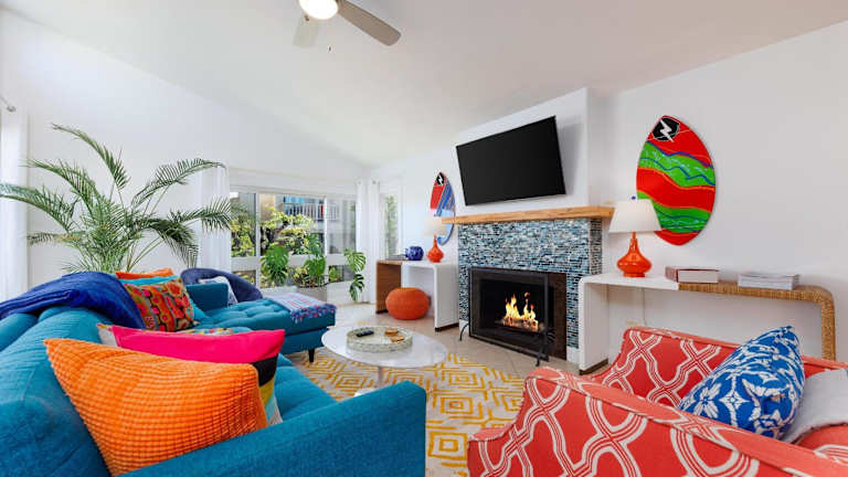 SB-503 - Cali Surfer Lounge ist ein Ferienhaus, das mit einem Balkon ausgestattet ist und die Gäste mit einer gehobenen Ausstattung empfängt. Die Unterkunft bietet ein komfortables Ambiente.