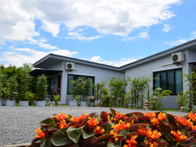 Das SB Holiday Resort bietet Ihnen Poolblick, kostenfreies WLAN und kostenfreie Privatparkplätze in Chiang Mai, 15 km vom Flughafen Central Plaza Chiang Mai entfernt. Jede Unterkunft verfügt über ein Sofa, einen Sitzbereich, einen Flachbild-Sat-TV, eine gut ausgestattete Küche mit einem Essbereich und ein eigenes Bad mit einem Haartrockner. Ein Kühlschrank, ein Kochfeld, ein Toaster und ein Wasserkocher sind ebenfalls vorhanden. Der Ferienpark bietet einen Kinderspielplatz. Schwimmen Sie im Außenpool, gehen Sie wandern oder radfahren, oder entspannen Sie im Garten und nutzen Sie die Grillmöglichkeiten. Der Nachtbasar Chiang Mai und der Wat Phra That Doi Kham liegen jeweils 15 km vom SB Holiday Resort entfernt. Der nächstgelegene Flughafen ist der 16 km von der Unterkunft entfernte internationale Flughafen Chiang Mai. Wir bieten Ihnen eine großzügige Unterkunft in Chiang Mai, einen Außenpool und kostenfreies WLAN. Die klimatisierten Zimmer sind in neutralen Farben gehalten und mit Holzmöbeln,Küchenzeile, einem Flachbild-TV und einem Sofa ausgestattet. Das SB Holiday Resort liegt ca.15 Fahrminuten vom Einkaufszentrum und ca.15 Fahrminuten vom internationalen Flughafen Chiang Mai entfernt. Das SB Holiday Resort bietet 4 Ferienhäuser mit einem großen, üppigen Garten. Freuen Sie sich zudem auf einen Außenpool und kostenfreies WLAN in allen Bereichen. An der Unterkunft stehen kostenfreie Privatparkplätze zur Verfügung. Die Unterkünfte verfügen 2 Klimaanlagen sowie ein Badezimmer mit einer Dusche. Der Nachtbasar Chiang Mai liegt ca. 11 km vom Resort entfernt und den Busbahnhof Chiang Mai erreichen Sie nach ca.12 km. Der nächste Flughafen ist der ca. 13 km entfernte internationale Flughafen Chiang Mai. nur 2 Km von der Christlichen Deutsche Schule Chiang Mai entfernt In der Unterkunft können Sie Tischtennis spielen und die Umgebung ist bei Radfahrern und Wanderern beliebt. Gesprochene Sprachen: Deutsch, Englisch, Thailändisch