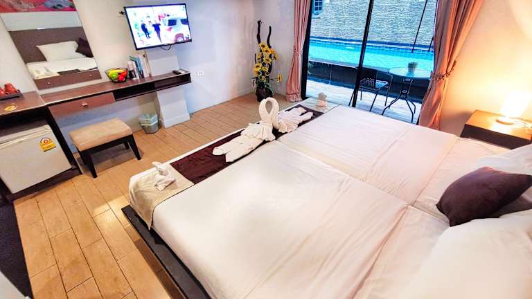 Im Scandia Beach Hotel können Sie nicht nur die Sonne und das Meer genießen, sondern auch den Außenpool und die Terrasse des Hotels nutzen. Nehmen Sie ein erfrischendes Bad im Pool oder entspannen Sie sich auf den Liegestühlen und genießen Sie die warme thailändische Sonne. Das Hotel bietet auch eine Autovermietung, um die Umgebung zu erkunden und die nahegelegenen Strände und Sehenswürdigkeiten zu besuchen.