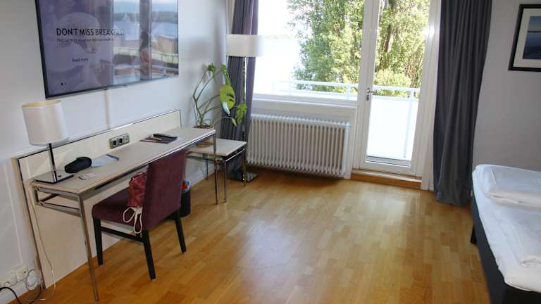 Zimmer mit Balkon und herrlichem Hafenblick, sehr empfehlenswert.