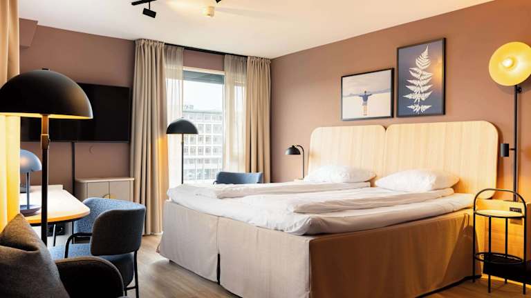 Das Scandic Nidelven Hotel bietet 343 moderne Nichtraucherzimmer auf 6 Etagen. Die Zimmer verfügen über eine zentral gesteuerte Klimaanlage, einen Kühlschrank und einige Zimmer bieten einen schönen Blick auf den Fluss Nidelven. Holzböden und Tee- und Kaffeezubehör sorgen für zusätzlichen Komfort. In den Badezimmern stehen Ihnen Kosmetikartikel und ein Haartrockner zur Verfügung.