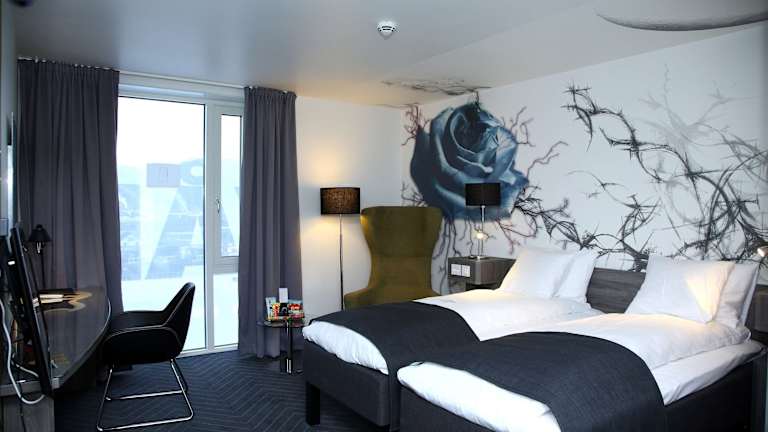 Das Hotel Scandic Rock City bietet moderne Zimmer, die nach Musikthemen gestaltet sind. Jedes Zimmer verfügt über eine Minibar und ein eigenes Bad mit Dusche. Die Zimmer sind komfortabel und stilvoll eingerichtet und bieten den Gästen einen angenehmen Aufenthalt.