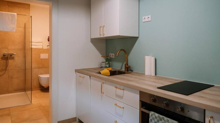 Die Ferienwohnung umfasst ein Schlafzimmer, eine voll ausgestattete Küche mit Kühlschrank und Geschirrspüler sowie ein Badezimmer mit Dusche und Haartrockner. Die Ausstattung beinhaltet auch kostenloses WLAN und Parkplatzmöglichkeiten.