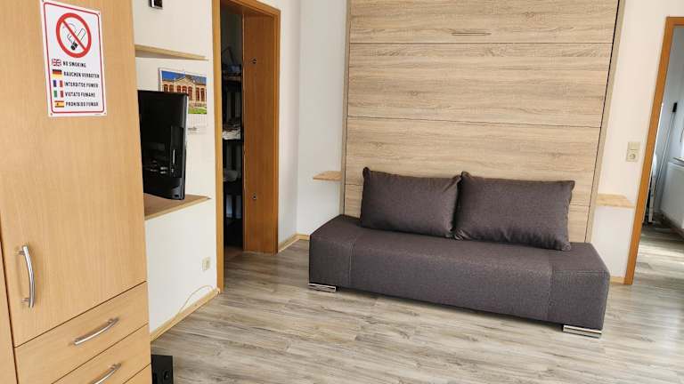 Die Ferienwohnung besteht aus 1 Schlafzimmer und verfügt über eine voll ausgestattete Küche sowie ein eigenes Badezimmer. Ein Flachbild-TV ist ebenfalls vorhanden.