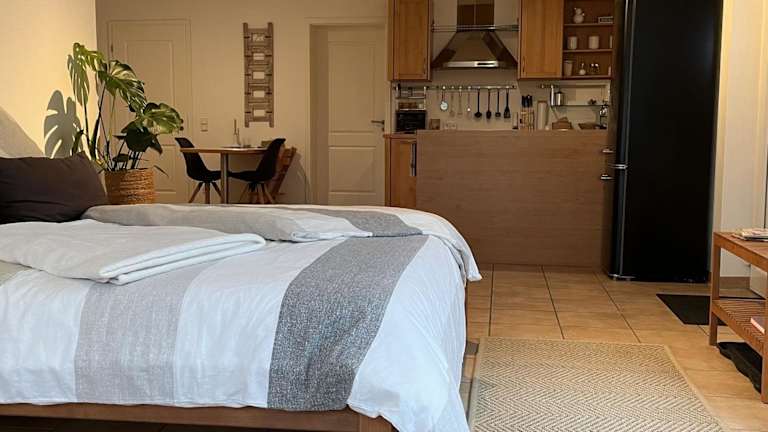 Das Apartment im SCHEPPEs AUSZEIT verfügt über ein gemütliches Schlafzimmer, in dem Sie sich nach einem langen Tag entspannen können. Das Wohnzimmer ist mit einem Flachbild-Sat-TV ausgestattet, damit Sie Ihre Lieblingssendungen nicht verpassen. Die Küchenzeile ist mit einem Kühlschrank und einem Geschirrspüler ausgestattet, so dass Sie Ihre eigenen Mahlzeiten zubereiten können. Das Badezimmer verfügt über eine Dusche und Handtücher und Bettwäsche werden gestellt.