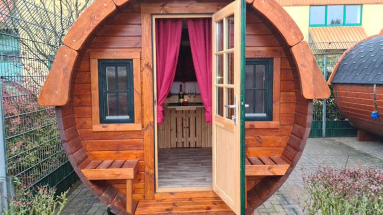 Die Unterkunft Schlaffass Holzfass im Banjapark Rees bietet eine einzigartige Übernachtungsmöglichkeit. Es handelt sich um ein Holzfass, das mit einem Garten und einer Terrasse ausgestattet ist und eine besondere Atmosphäre schafft.