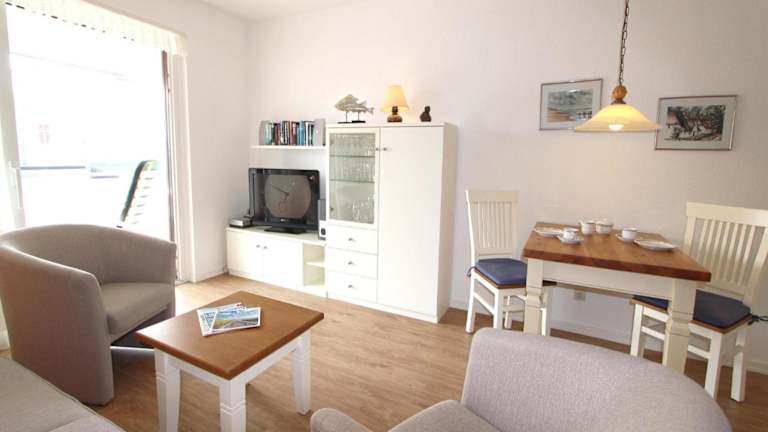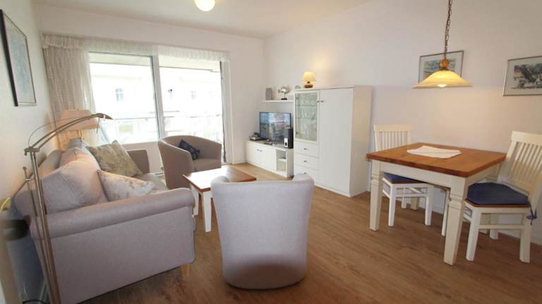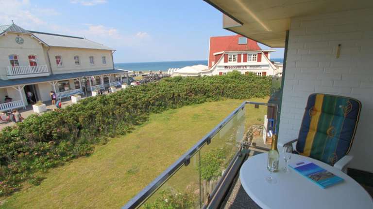 Schloss am Meer - Dünenstr 25, App 6 ist eine Unterkunft mit Meerblick, die komfortabel ausgestattet ist und einen Balkon sowie einen kostenlosen Privatparkplatz bietet.