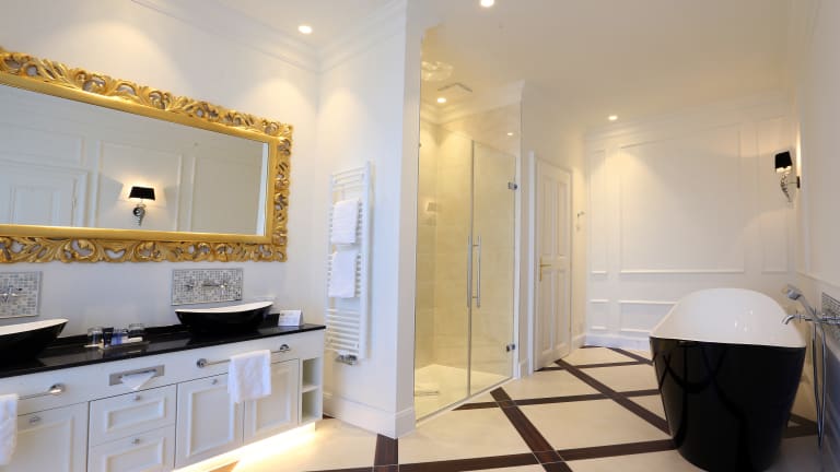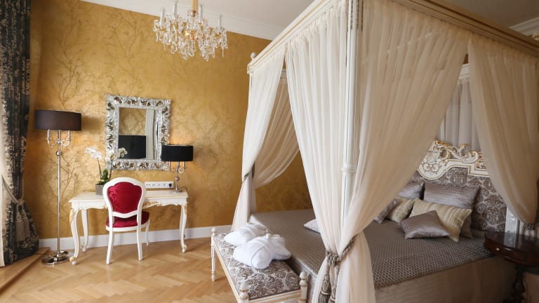 Wenn sich die Pforten der Schloss Schönbrunn Grand Suite öffnen, nimmt der imperiale Charme der Kaiserzeit all ihre Gäste in Empfang. Im imperialen Ambiente können Gäste auf großzügigen 167 m² wie ein Kaiser dinieren und sich wie eine Prinzessin betten. Die exklusive Suite der Austria Trend Hotels ist eine Kombination aus Luxusunterkunft und exklusiver Lage. Sie bietet alles, was das Herz von Royalfans zum Pulsieren bringt. Die Gemächer des ungewöhnlichen Hotelzimmers erstrecken sich über 167 Quadratmeter im Osttrakt der einstigen Sommerresidenz des Kaiserhauses. Es gibt zwei Schlafzimmer, zwei moderne Bäder, einen großzügigen Wohnraum, ein Esszimmer und eine Küche – barock-imperiales Design trifft auf moderne Komforttechnik. Die Ausstattung ist sehr nobel und das Interieur im imperialen Stil und möglichst originalgetreu gehalten, inklusive romantischem Himmelbett und geschmackvollen Stuckarbeiten. Gut zu sehen ist dies auch an der seit den 1830er Jahren am Wiener Hof verbindlich gewordenen Spielart des Neorokoko, die auch als „maria-theresianischer“ Stil bezeichnet wird. Auf dieses harmonische Farbenspiel wurde auch bei der Einrichtung der neuen Suite Bezug genommen: Farblich dominieren Schwarz, Weiß und Gold. Fixer Bestandteil der Suite ist auch der berühmte Hofdamast, ebenfalls bekannt als „Ananasdamast“ – ein traditioneller roter Seidenstoff, benannt nach dem charakteristischen Hauptmotiv einer stilisierten Ananasfrucht, der ausschließlich am Wiener Hof Verwendung fand. Der Master´s Bedroom ist in Weiß- und Goldtönen gehalten und mit einem baldachinüberdachten, mit Schnitzereien verzierten und von einer edlen Gold-Tapezierung mit schimmernden Steinchen umgebenen Himmelbett ausgestattet. Von diesem aus kann man einen direkten Blick auf die Gloriette genießen. Aber auch das zweite Schlafzimmer ist nicht minder luxuriös, wirkt durch sein rot-schwarzes Design jedoch etwas moderner. Es ist mit einem prunkvoll schwarzen Bett mit Goldumrandungen, lederbezogenem Schreibtisch und gold-patinierter Kommode ausgestattet. Ein mit Moire-Tapeten bespannter und reichlich stuckverzierter Flur verbindet die beiden Schlafgemächer. Eine in schwarz und weiß gehaltene Kitchenette bietet eine mit moderner Technik ausgestattete Kochmöglichkeit. Getafelt wird im Salon auf mit Ananasdamast bespannten Stühlen mit traditioneller weißer Lackierung und Goldapplikationen – in Anlehnung an das Schönbrunner Rösselzimmer. In den zwei großzügigen und modernen Luxusbädern lädt eine in schwarzem Klavierlack eingelassene Sitzbadewanne zum Entspannen ein.