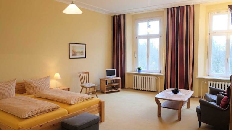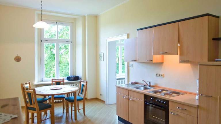 Das Schloss Zinzow bietet eine Auswahl an Unterkünften, die Ihren Bedürfnissen entsprechen. Einige der Unterkünfte verfügen über eine voll ausgestattete Küche mit einem Geschirrspüler und einem Backofen, ideal für Gäste, die gerne selbst kochen möchten. Die Zimmer sind komfortabel eingerichtet und bieten eine gemütliche Atmosphäre für einen erholsamen Aufenthalt.