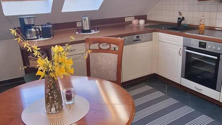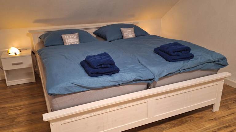Die Ferienwohnung umfasst zwei Schlafzimmer und verfügt über eine voll ausgestattete Küche mit Kühlschrank und Geschirrspüler. Es stehen zwei Badezimmer mit Dusche und Badewanne zur Verfügung. Handtücher und Bettwäsche werden bereitgestellt. Das Nichtraucherobjekt ist mit kostenlosem WLAN ausgestattet.