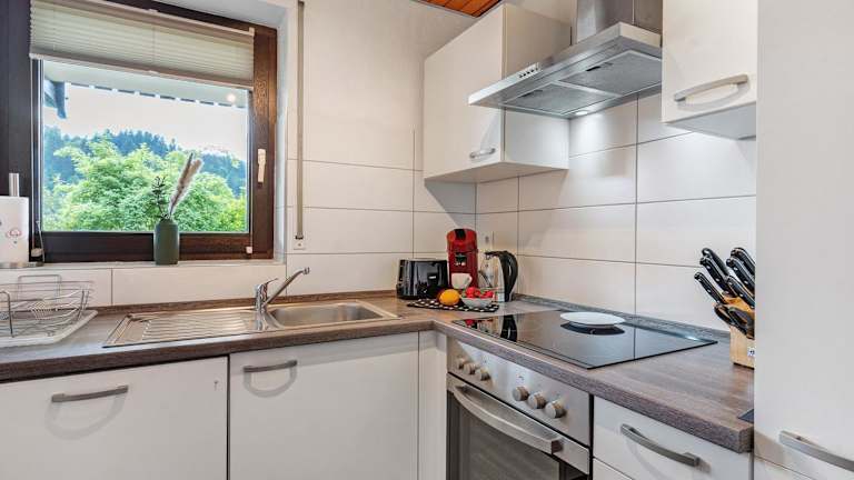 Die Ferienwohnung verfügt über ein Schlafzimmer, ein Wohnzimmer, einen Flachbild-TV, eine gut ausgestattete Küche mit Kühlschrank und Ofen sowie ein Badezimmer mit Dusche. Handtücher und Bettwäsche werden bereitgestellt.