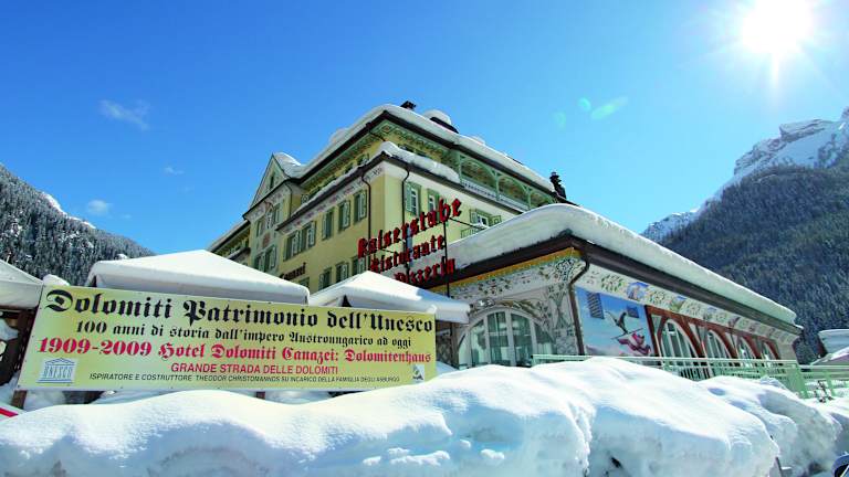 Das Hotel Dolomiti Schloss befindet sich in Canazei, einem beliebten Skigebiet. Der Skibus hält nur 100 m vom Hotel entfernt, so dass Sie bequem zu den Pisten gelangen können. Die Umgebung bietet auch viele weitere Freizeitmöglichkeiten wie Wandern und Mountainbiken. Genießen Sie die atemberaubende Natur und die malerische Landschaft der Dolomiten.