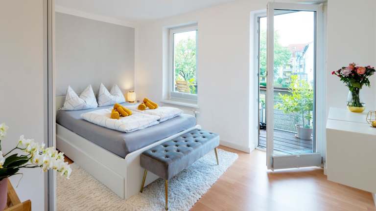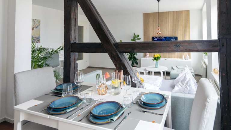 Das Schlosskönig - Modernes & zentrales Apartment bietet eine ansprechende Unterkunft mit Gartenblick. Die Ferienwohnung ist modern eingerichtet und verfügt über Annehmlichkeiten wie einen Balkon und kostenlosen WLAN-Zugang.
