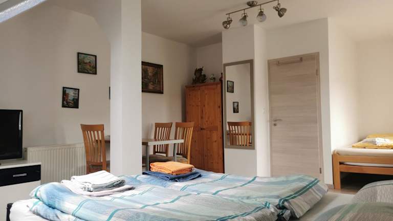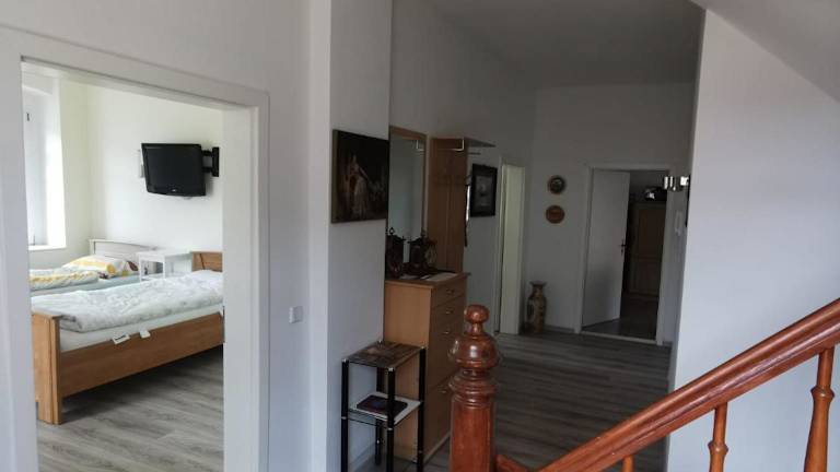 Das Schmetterling Zimmer in Bad Lausick bietet eine gemütliche Unterkunft mit einem Garten, kostenfreien Privatparkplätzen und einer Terrasse. Die Pension ist ideal gelegen, nur wenige Kilometer von beliebten Sehenswürdigkeiten wie dem Panometer Leipzig und dem Schloss Kriebstein entfernt. Mit kostenfreiem WLAN und komfortablen Zimmern, die mit einem Flachbild-TV und einem Kühlschrank ausgestattet sind, bietet das Schmetterling Zimmer eine angenehme Unterkunft für Ihren Aufenthalt in Bad Lausick.