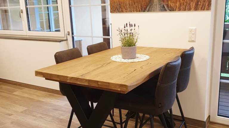 Die Ferienwohnung umfasst 2 Schlafzimmer und 1 Badezimmer. Zudem steht eine voll ausgestattete Küche zur Verfügung, ergänzt durch einen Essbereich und einen Flachbild-TV mit Satellitenkanälen. Bettwäsche und Handtücher sind ebenfalls enthalten.