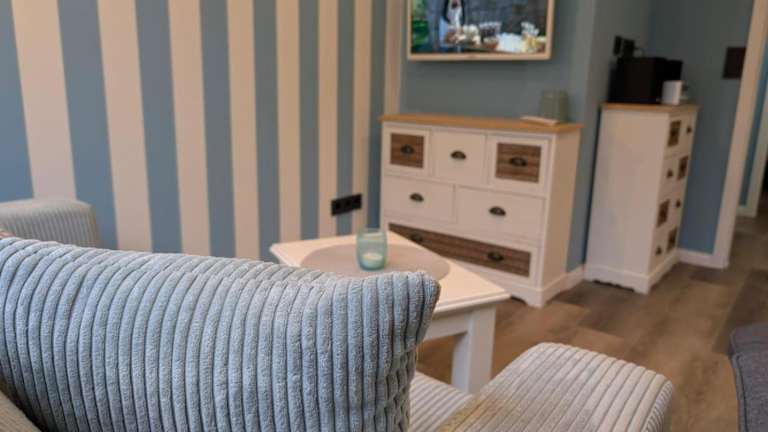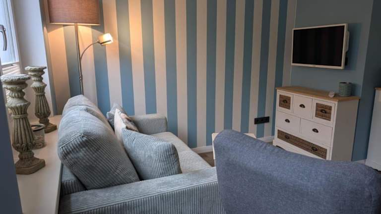 Die Ferienwohnung verfügt über ein Schlafzimmer und ist mit einem Fernseher sowie einer Küchenzeile ausgestattet. In der Küchenzeile befinden sich ein Kühlschrank und ein Geschirrspüler. Für den Komfort der Gäste werden Handtücher und Bettwäsche bereitgestellt.