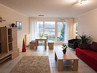 Die Ferienwohnung umfasst ein Schlafzimmer, ein Badezimmer mit Dusche und Badewanne sowie ein Wohnzimmer mit Sitzbereich und Essbereich. Die Küche ist mit einem Kühlschrank, Geschirrspüler und Ofen ausgestattet. Handtücher und Bettwäsche werden bereitgestellt. Es stehen Nichtraucherzimmer zur Verfügung.