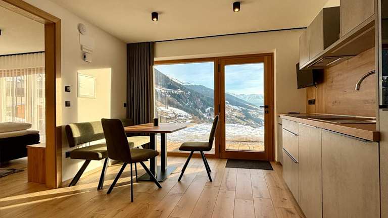 Alle Wohneinheiten verfügen über eine Veranda oder einen Patio mit Blick auf die Berge, eine voll ausgestattete Küche mit Kühlschrank, Geschirrspüler, Ofen, Herdplatte und Kaffeemaschine. Jedes Zimmer hat ein eigenes Badezimmer mit Dusche. Haustiere sind nur in ausgewählten Apartments gestattet.