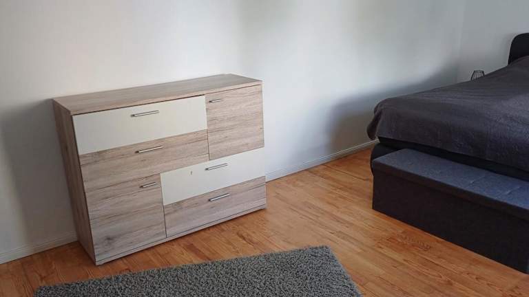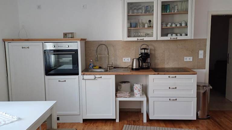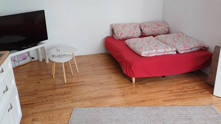 Die Ferienwohnung verfügt über ein Schlafzimmer, eine voll ausgestattete Küche mit Kühlschrank und Ofen, einen Flachbild-TV, einen gemütlichen Sitzbereich sowie ein Badezimmer mit Dusche. Handtücher und Bettwäsche werden bereitgestellt.