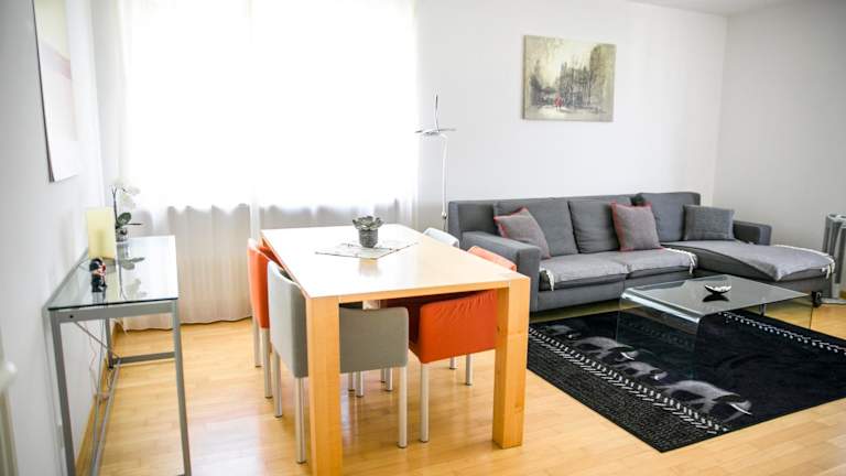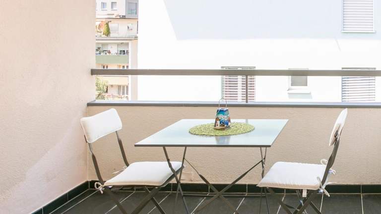 Die Ferienwohnung verfügt über einen Balkon mit Stadtblick, ein Schlafzimmer und ein Wohnzimmer. Zur Ausstattung gehören ein Flachbild-TV sowie eine gut ausgestattete Küche mit Kühlschrank und Geschirrspüler. Handtücher und Bettwäsche sind in der Unterkunft vorhanden.