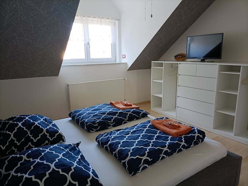 Die Ferienwohnung umfasst eine Küche mit Kühlschrank, Geschirrspüler und Ofen, ein Wohnzimmer mit Sitz- und Essbereich, zwei Schlafzimmer sowie ein Badezimmer mit Dusche und Whirlpool. Handtücher und Bettwäsche werden zur Verfügung gestellt.