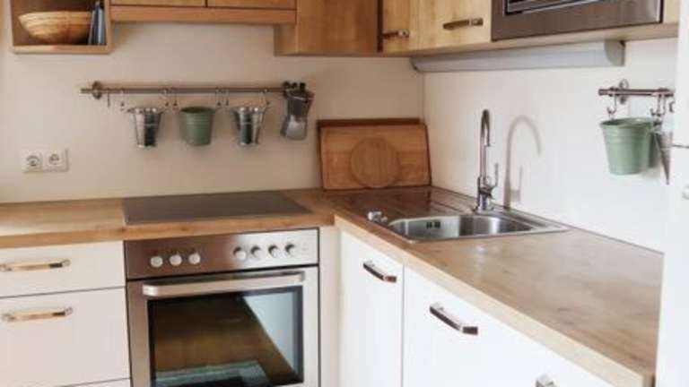 Die Unterkunft umfasst eine Küche mit Kühlschrank und Geschirrspüler, jedoch sind keine weiteren Informationen zu Verpflegungsmöglichkeiten vorhanden.