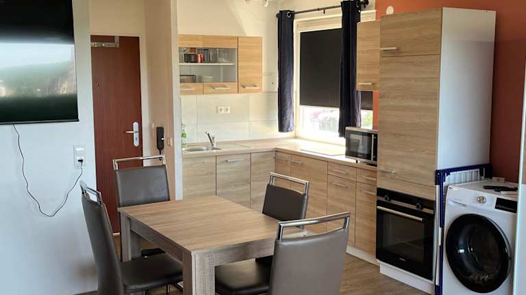 In der schönen Wohnung mit Festungsblick steht Ihnen eine voll ausgestattete Küche zur Verfügung, in der Sie Ihre eigenen Mahlzeiten zubereiten können. Alternativ können Sie auch eines der nahegelegenen Restaurants besuchen und die lokale Küche genießen. Würzburg bietet eine Vielzahl von gastronomischen Angeboten für jeden Geschmack.