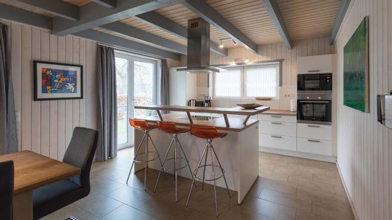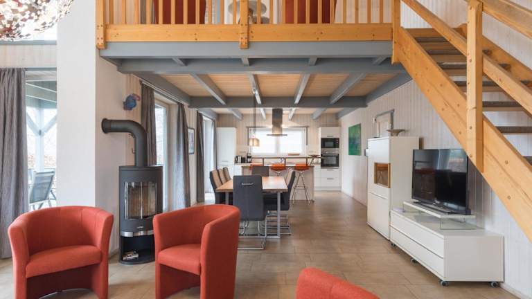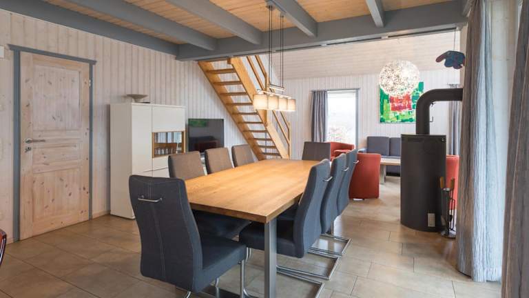 Das Ferienhaus verfügt über 4 Schlafzimmer und ist mit einem TV sowie einer voll ausgestatteten Küche ausgestattet. Diese Küche bietet einen Kühlschrank, einen Geschirrspüler, eine Waschmaschine, einen Ofen und eine Mikrowelle.