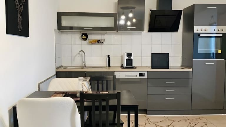 Die Ferienwohnung bietet ein Schlafzimmer, ein Wohnzimmer, eine voll ausgestattete Küche mit Geschirrspüler und Kaffeemaschine sowie ein Badezimmer mit Dusche und kostenlosen Pflegeprodukten. Handtücher und Bettwäsche werden bereitgestellt.