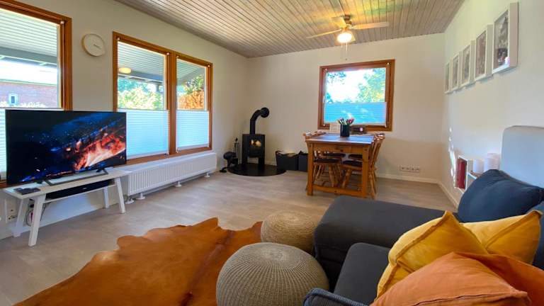 Das Schwedenhaus mit Holzofen & Außenkamin auf 1400m² befindet sich in Tensbüttel-Röst, nur 20 km vom Stadttheater Heide entfernt. Die Umgebung bietet zahlreiche Möglichkeiten für Outdoor-Aktivitäten wie Wandern und Radfahren. Entdecken Sie die Schönheit der Natur und genießen Sie die Ruhe und Entspannung inmitten der grünen Landschaft.