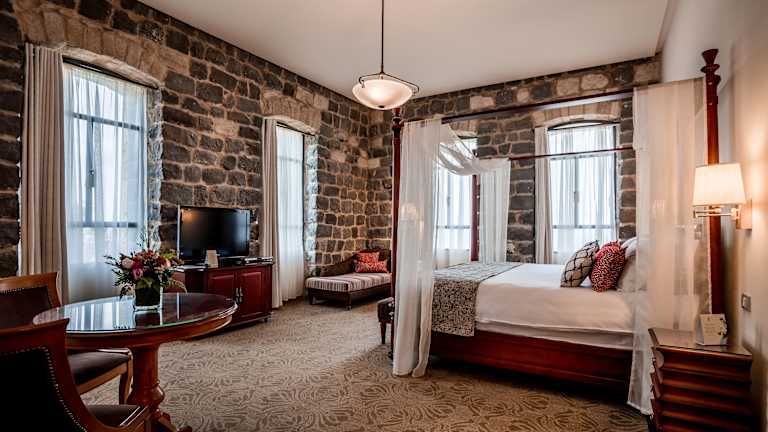 Das Scots Hotel in Tiberias bietet Ihnen einen luxuriösen Aufenthalt in einem historischen Gebäude mit Blick auf den See Genezareth. Genießen Sie den erstklassigen Service und die entspannte Atmosphäre dieses ehemaligen Krankenhauses, das heute ein elegantes Hotel ist. Das Hotel verfügt über einen Swimmingpool und das Restaurant Torrance bietet exquisite Gourmetgerichte und eine beeindruckende Auswahl an Weinen.