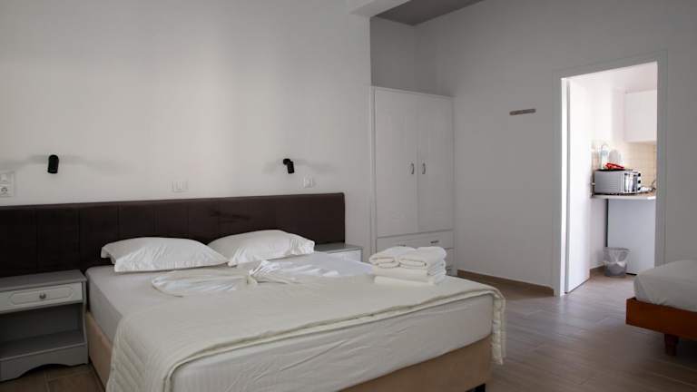 Die Apartments sind mit einer Küchenzeile mit Kühlschrank, Mikrowelle, Herdplatte und Wasserkocher ausgestattet. Zusätzlich stehen Gartenmöbel auf der Terrasse zur Verfügung, die einen Meerblick bietet. Zustellbetten sind für Gäste ab 3 Jahren erhältlich, während Babybetten kostenlos für Kinder bis 2 Jahre bereitgestellt werden.