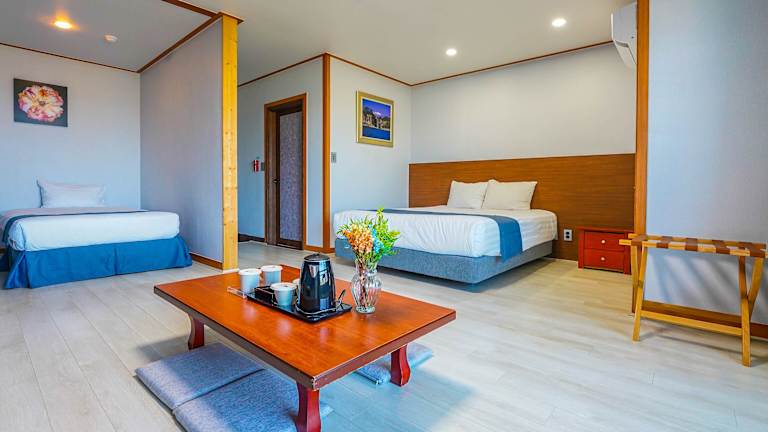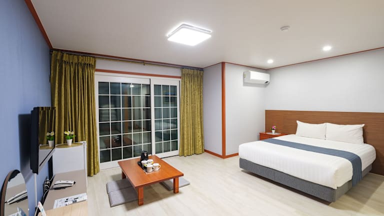 Die klimatisierten Zimmer im Sea Cliff Hotel Jeju sind elegant und komfortabel eingerichtet. Holzböden verleihen den Zimmern eine warme Atmosphäre und der Flachbild-TV und der Schminktisch bieten Ihnen alle Annehmlichkeiten, die Sie benötigen. Einige Zimmer verfügen über eine Küche und einen separaten Wohnbereich, so dass Sie sich wie zu Hause fühlen können. Das Badezimmer ist modern und gut ausgestattet.