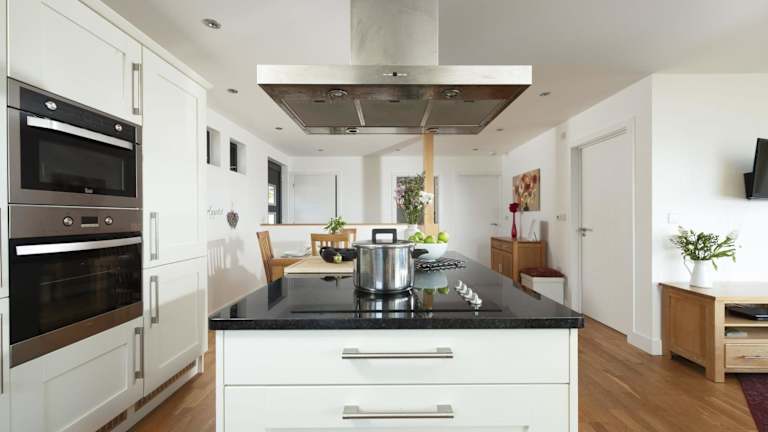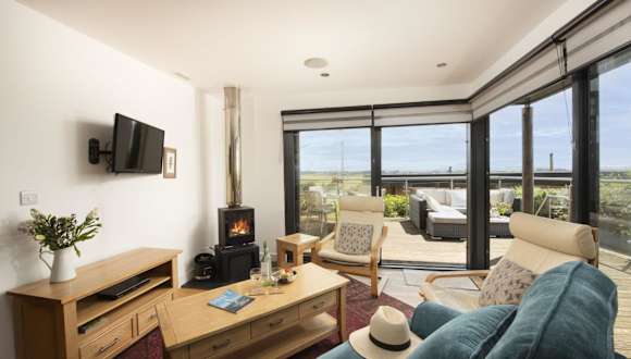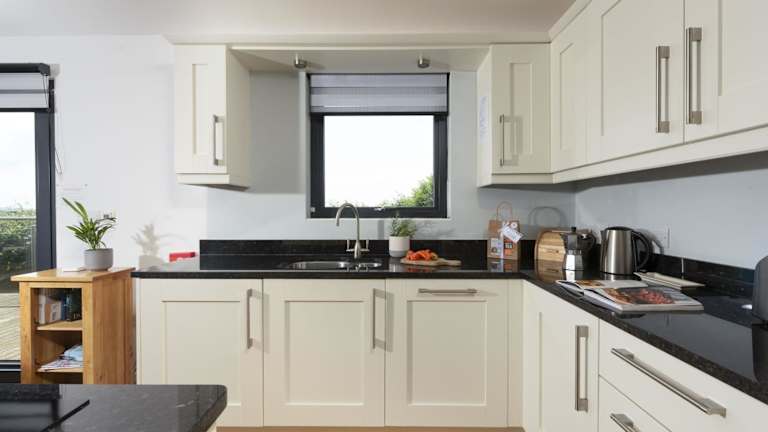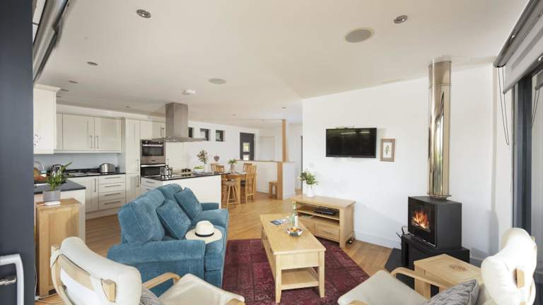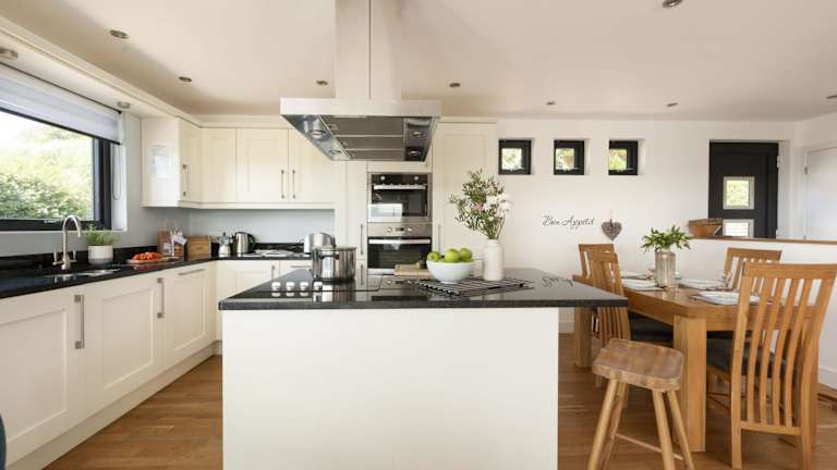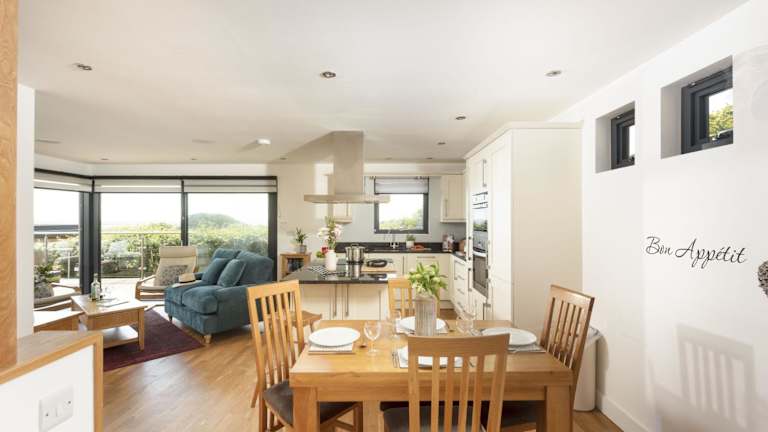 Das Ferienhaus verfügt über zwei Schlafzimmer und ein Wohnzimmer. Die Küche ist gut ausgestattet und beinhaltet moderne Annehmlichkeiten wie Kühlschrank und Geschirrspüler.