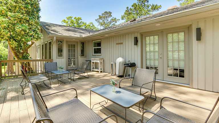 Das Ferienhaus im Sea Pines Resort Escape with Deck about 2 Mi to Beach! bietet Platz für bis zu 6 Personen. Es verfügt über 3 Schlafzimmer, in denen Sie sich nach einem langen Tag am Strand ausruhen können. Die voll ausgestattete Küche bietet Ihnen die Möglichkeit, Ihre eigenen Mahlzeiten zuzubereiten, und das Wohnzimmer ist mit einem Flachbild-Kabel-TV ausgestattet, um Ihnen Unterhaltung zu bieten. Die Handtücher und Bettwäsche werden gestellt, so dass Sie sich um nichts kümmern müssen.