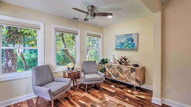 Das Sea Pines Resort Escape with Deck about 2 Mi to Beach! befindet sich auf Hilton Head Island und ist nur 2,9 km vom Coligny Beach Park entfernt. Die Lage des Ferienhauses ermöglicht es Ihnen, die wunderschönen Strände von Hilton Head Island in nur wenigen Minuten zu erreichen. Die Umgebung bietet auch eine Vielzahl von Restaurants, Einkaufsmöglichkeiten und Freizeitaktivitäten. Der Flughafen Hilton Head ist nur 12 km entfernt, so dass Sie problemlos an- und abreisen können.