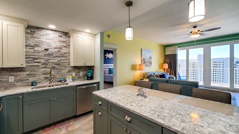 Die Unterkunft Sea-Renity at Laketown Wharf #1607 by Nautical Properties bietet Übernachtungsmöglichkeiten mit kostenlosem WLAN, Klimaanlage, einem Außenpool und einem eigenen Strandbereich. Zu den Annehmlichkeiten gehören eine Terrasse sowie eine Bar.