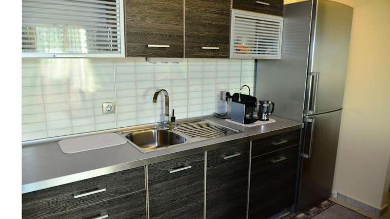 Das klimatisierte Apartment besteht aus zwei Schlafzimmern, einem Wohnzimmer, einer voll ausgestatteten Küche und einem Badezimmer. Die Zimmer sind gemütlich und komfortabel eingerichtet und bieten Platz für bis zu vier Personen. Die voll ausgestattete Küche verfügt über einen Kühlschrank und eine Kaffeemaschine, so dass Sie Ihre eigenen Mahlzeiten zubereiten können. Handtücher und Bettwäsche werden gestellt und WLAN ist kostenlos verfügbar.