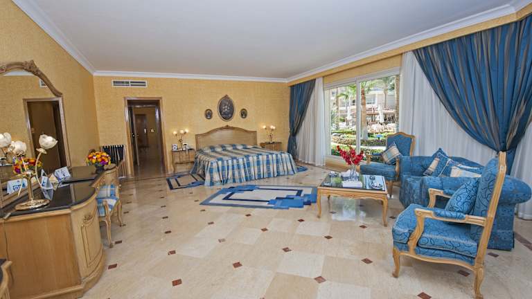Die Unterkunft bietet klimatisierte Zimmer mit Balkon und Pool- oder Meerblick. Zu den Zimmerausstattungen gehören Satelliten-TV, Minibar (gegen Gebühr), WLAN und ein eigenes Bad mit kostenfreien Pflegeprodukten. Die Zimmertypen variieren von Doppelzimmern mit Meer- oder Poolblick bis zu speziellen Promo-Zimmern, die komfortabel ausgestattet sind.