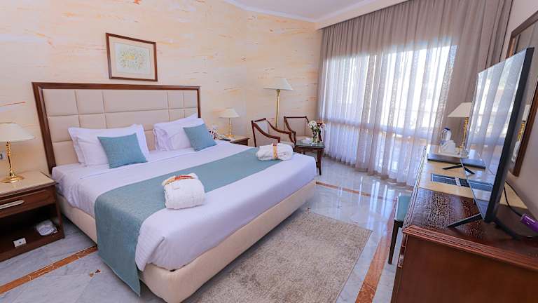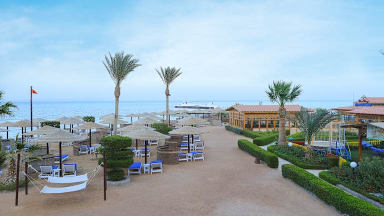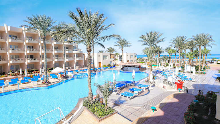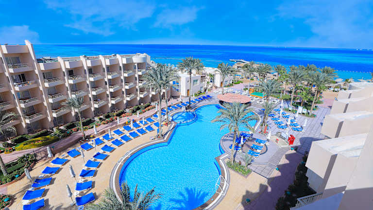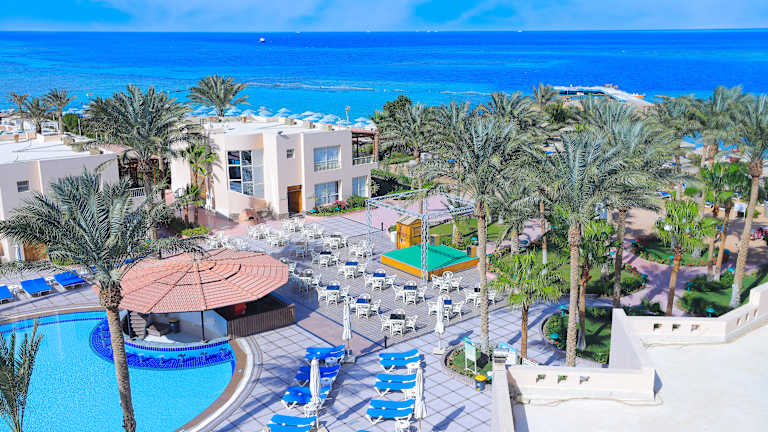 Das Hotel befindet sich in direkter Strandlage mit Blick auf das Rote Meer. Es liegt nur 2 km von der Abdulmoneim-Riadh-Moschee und dem Stadtzentrum von Sakkala entfernt. Der internationale Flughafen Hurghada ist etwa 10 km entfernt.