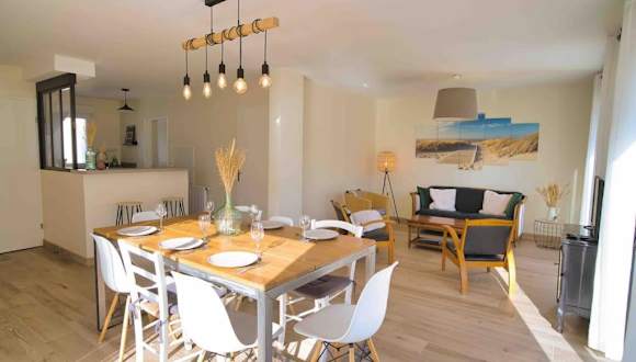 Das Ferienhaus beinhaltet 4 Schlafzimmer, eine Küche mit Kühlschrank und Geschirrspüler, einen Flachbild-TV, einen Sitzbereich sowie 2 Badezimmer, die mit einer Dusche ausgestattet sind. Handtücher und Bettwäsche sind auf Anfrage gegen Aufpreis erhältlich.