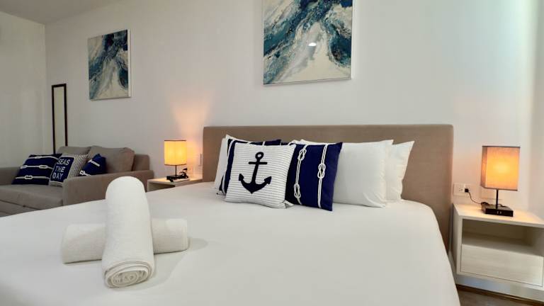 Die Zimmer sind mit einer voll ausgestatteten Küchenzeile, einem Kühlschrank und einer Kaffeemaschine, einem Flachbild-TV sowie einem eigenen Badezimmer mit Dusche und Badewanne ausgestattet. Einige Einheiten verfügen über eine Terrasse oder einen Balkon mit Blick auf die Stadt oder das Meer.