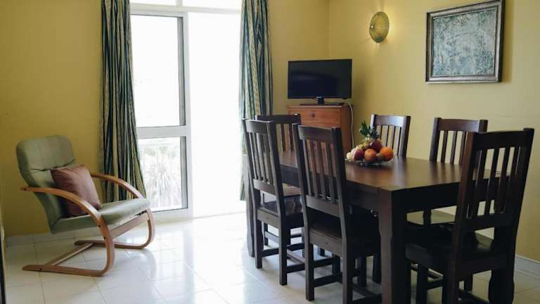 Die Ferienwohnung verfügt über Klimaanlage, ein separates Schlafzimmer, ein Wohnzimmer, eine voll ausgestattete Küche sowie ein Badezimmer. Zur Ausstattung gehört zudem ein Flachbild-TV.