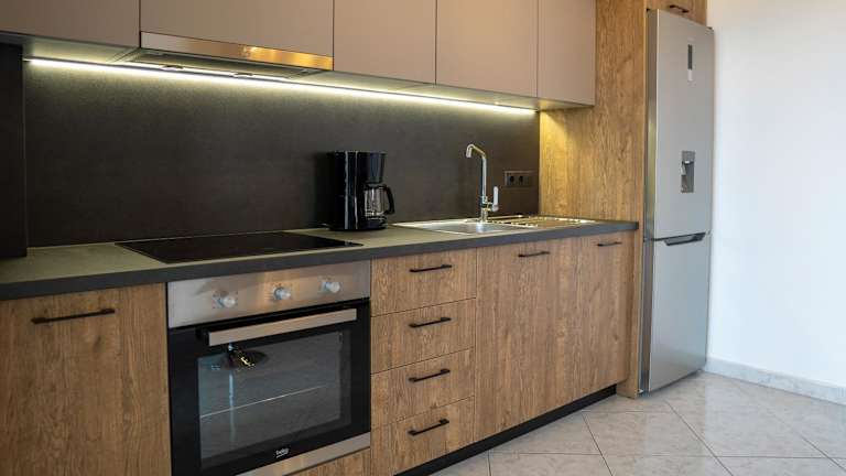 In der voll ausgestatteten Küche des Apartments können Sie Ihre eigenen Mahlzeiten zubereiten und den Komfort und die Bequemlichkeit eines eigenen Essbereichs genießen. Alternativ können Sie auch eines der nahegelegenen Restaurants besuchen und die lokale Küche probieren.