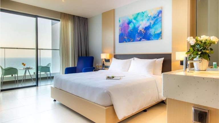 Das Sea view at The Arena Cam Ranh- Bai Dai Beach, near airport bietet seinen Gästen eine ideale Lage nahe dem Flughafen und einen atemberaubenden Meerblick. Die Unterkunft verfügt über komfortable Zimmer, ein Restaurant, einen Außenpool und einen Kinderspielplatz. WLAN ist in allen Bereichen kostenfrei verfügbar und Parkplätze stehen ebenfalls zur Verfügung. Genießen Sie Ihren Aufenthalt in diesem charmanten Aparthotel und erkunden Sie die nahegelegenen Sehenswürdigkeiten wie das Alexandre Yersin Museum und den Tram Huong Tower.