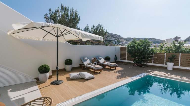 In der Umgebung der Sea View Luxury Villa White in Blue gibt es viele Aktivitäten, die Sie unternehmen können. Wandern Sie entlang der Küste und entdecken Sie versteckte Buchten und atemberaubende Ausblicke. Tauchen Sie ein in das klare Wasser und erkunden Sie die Unterwasserwelt. Oder genießen Sie einen entspannten Tag beim Angeln. Die Villa bietet Ihnen auch einen saisonalen Außenpool und einen Garten, in dem Sie sich erholen und die Sonne genießen können.