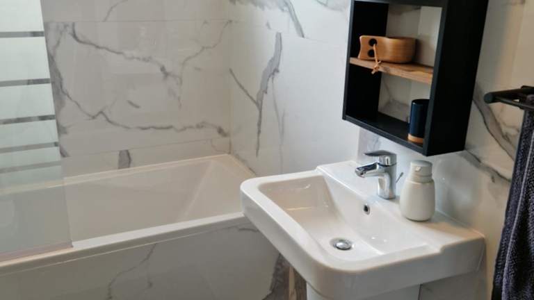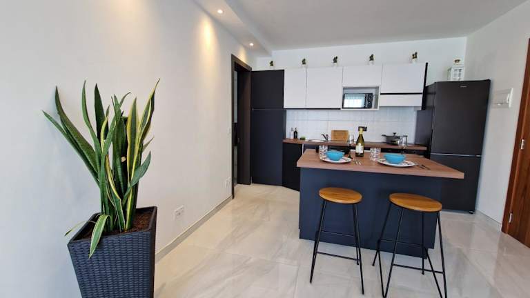 Die Ferienwohnung verfügt über Klimaanlage und besteht aus 1 Schlafzimmer, einem Wohnzimmer sowie einer voll ausgestatteten Küche mit Kühlschrank und Wasserkocher. Dazu gehören 2 Badezimmer mit Dusche und kostenlosen Pflegeprodukten. Handtücher und Bettwäsche werden ebenfalls bereitgestellt.