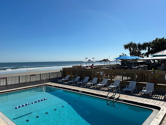 Das Sea Vista Motel in New Smyrna Beach bietet eine komfortable Unterkunft nur 100 m vom Strand entfernt. Neben einem Außenpool und kostenfreien Parkplätzen können die Gäste auch das hoteleigene Restaurant und die Bar genießen. Das Hotel verfügt über kostenfreies WLAN und ist in der Nähe von verschiedenen Stränden und Sehenswürdigkeiten gelegen. Die Zimmer sind gemütlich eingerichtet und bieten teilweise einen Balkon mit Meerblick. Einige Zimmer verfügen sogar über eine Küche. Das freundliche Personal sorgt dafür, dass Gäste mit frischer Bettwäsche und Handtüchern versorgt werden. In der Umgebung gibt es auch viele interessante Orte zu entdecken, darunter das Leuchtturmmuseum Ponce de Leon Inlet und der Daytona International Speedway. Der internationale Flughafen Daytona Beach ist nur 28 km entfernt.