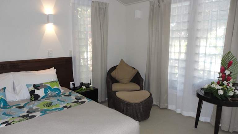 Das Resort verfügt über insgesamt 11 klimatisierte Zimmer, die alle mit einer Terrasse und Sitzgelegenheiten im Freien ausgestattet sind. Die Zimmer bieten eine angenehme Atmosphäre und sind mit Annehmlichkeiten wie einer Kochnische, einem Kühlschrank, einer Mikrowelle, einer Tee-/Kaffeemaschine, einem TV-Gerät und WLAN (gegen Gebühr) ausgestattet. Rollstuhlgerechte Zimmer mit barrierefreiem Badezimmer sind ebenfalls verfügbar.